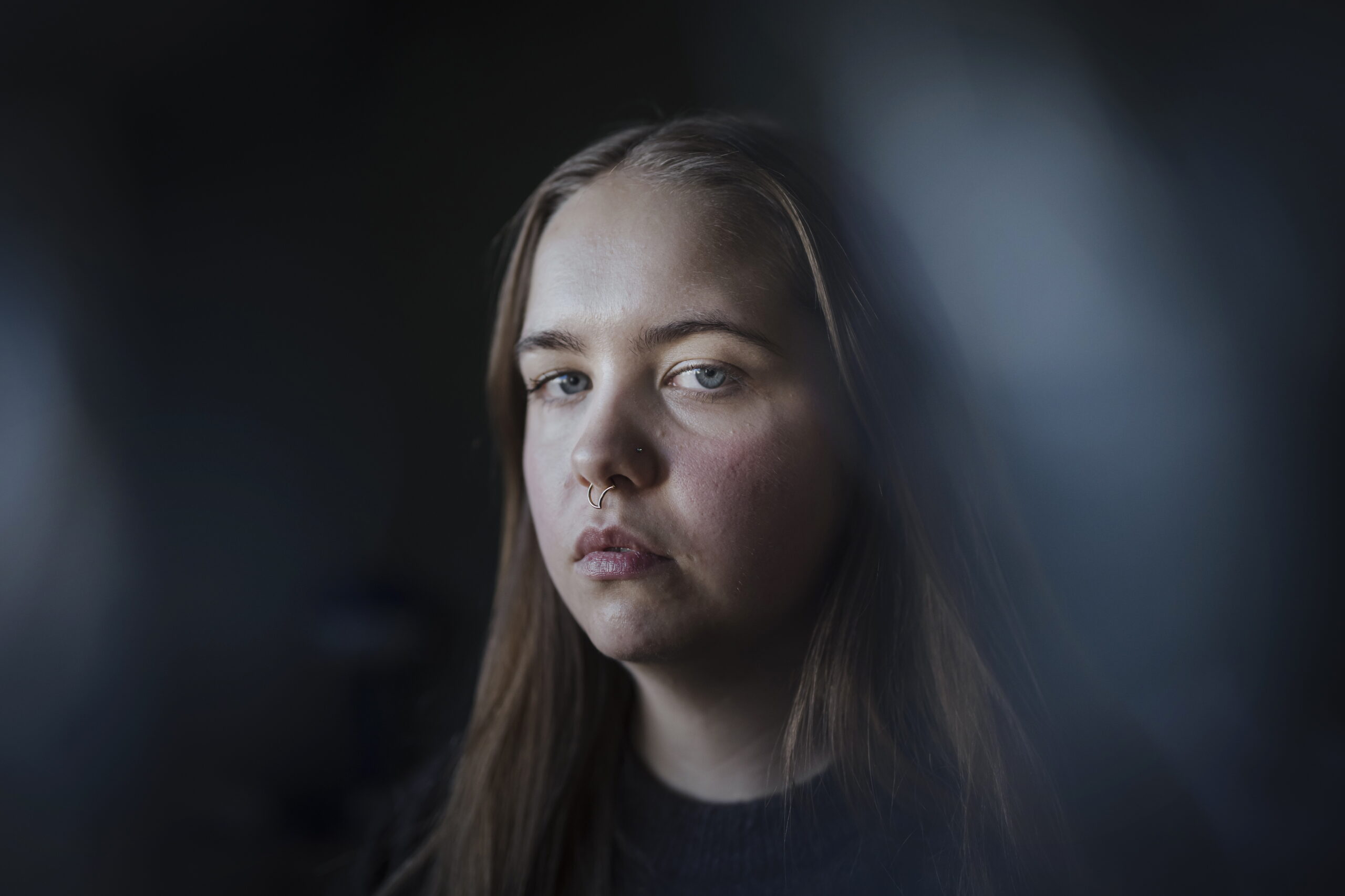 Hon ser oss rätt i ögonen. Detta mod, trots det skamfyllda ämnet, gör att frågor kring det mest intima lyfts till offentligheten. Fotografen har skapat ett varsamt och starkt porträtt som visar på respekt inför både den avbildade personen och ämnet. Hon avbildas som sig själv och inte i rollen av ett offer. Blicken är intensiv och vittnar om en förlorad tilltro men skickar också en uppmaning till betraktaren att lyssna på berättelsen för att andra ska undgå det som Sandra tvingats uppleva.